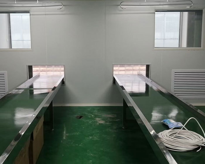 3.送回風(fēng)管道用熱渡鋅板制成,貼凈化保溫效果好的阻燃型PF發(fā)泡塑膠板。
