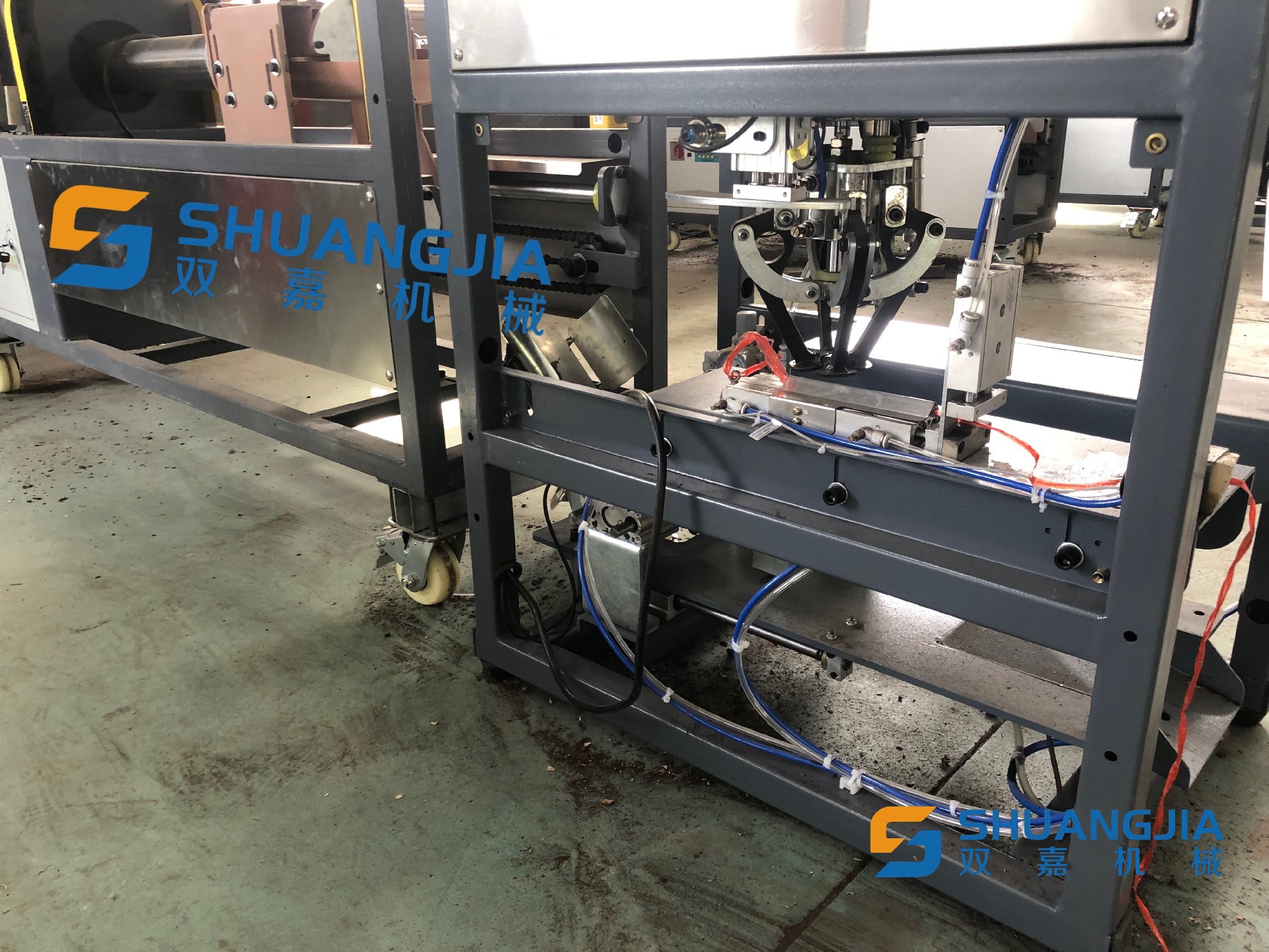 次行程開關(guān)完成一次裝袋。裝袋之前務(wù)必把扎繩機(jī)通電,以確保扎繩順利完成。