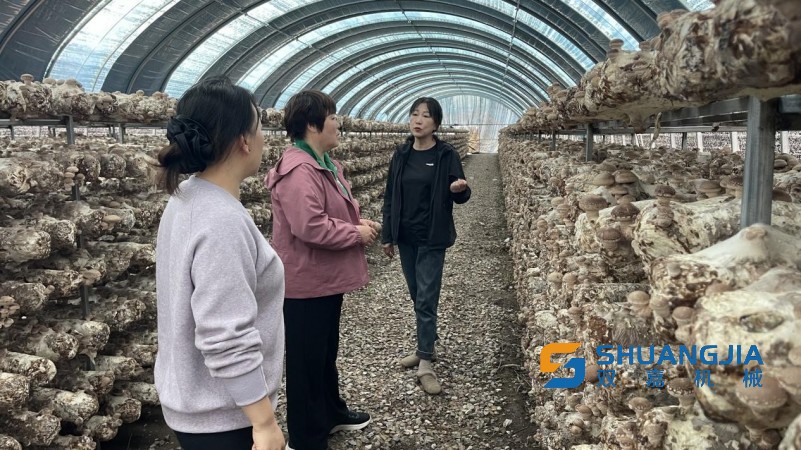 在榆樹鄉(xiāng)興龍食用菌合作社,專家現(xiàn)場查看了香菇菌棒轉(zhuǎn)色出菇情況,針對香菇0912品種爆發(fā)出菇進行指導。劉俊杰指出,一些香菇品種本身具有出菇集中、爆發(fā)的特點,在適宜的環(huán)境條件下,能夠快速形成大量的子實體原基,從而呈現(xiàn)出爆發(fā)出菇的現(xiàn)象??梢酝ㄟ^少量注水的方法,破壞其菌絲生長舒適條件來控制集中出菇,促進高質(zhì)量出菇、出好菇。